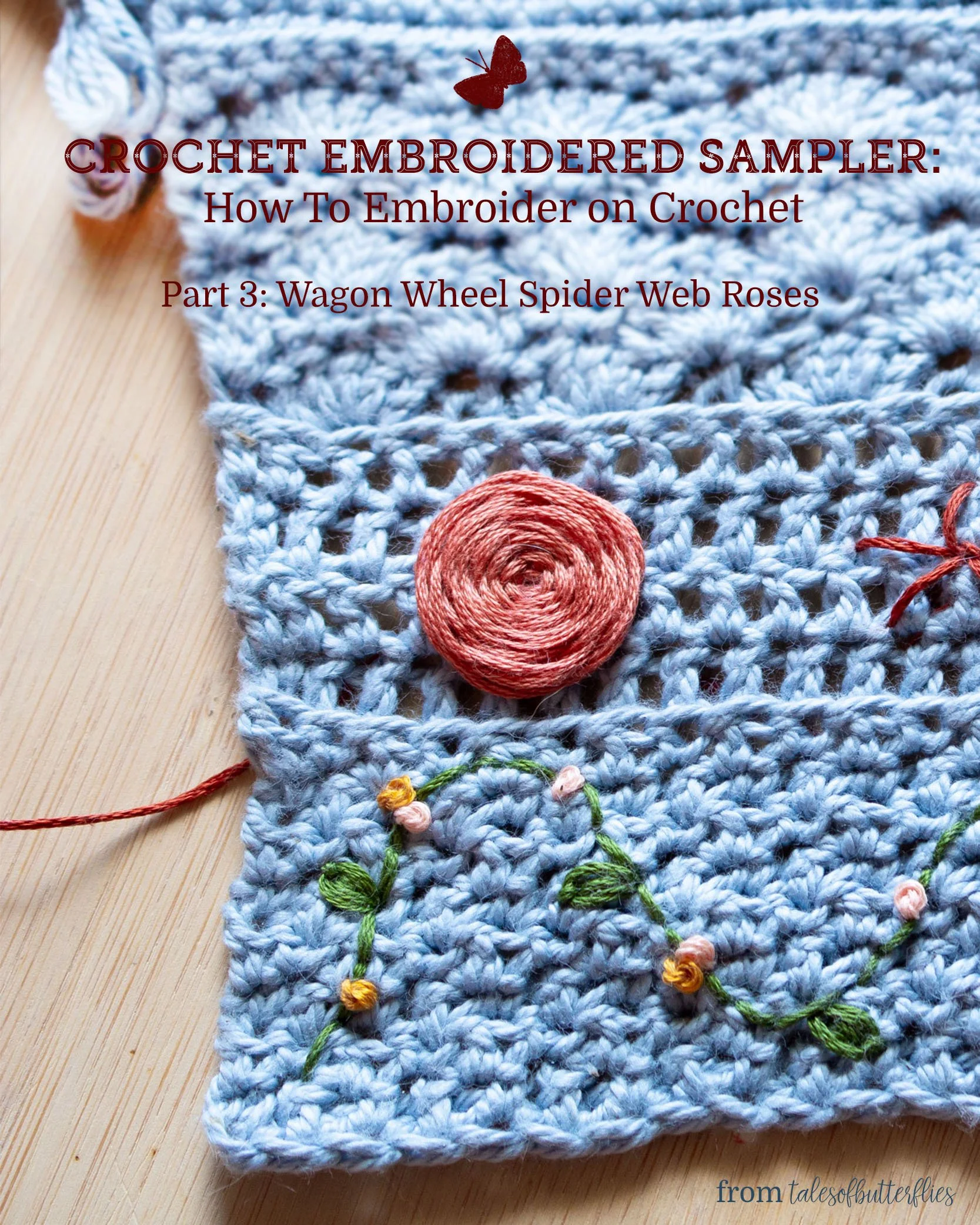 Crochet Embroidered Sampler: How To Embroider On Crochet Part 3 - Wagon Wheel Roses